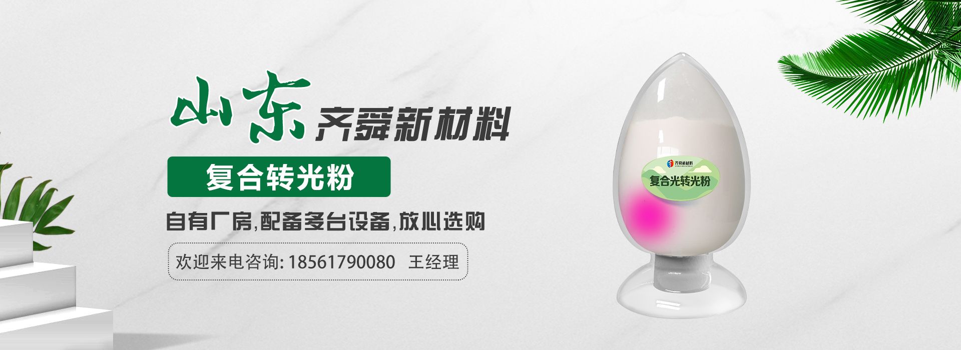 我公司前身為2011年成立的淄博舜明熒光科技有限公司。隨著公司的發(fā)展,廠址從淄博搬遷到青島,2020年5月公司重新注冊(cè)為山東齊舜新材料有限公司。公司注冊(cè)資本2000萬元,主要從事新材料研究和開發(fā)。目前主要產(chǎn)品包括:農(nóng)膜用轉(zhuǎn)光粉、轉(zhuǎn)光母粒以及轉(zhuǎn)光農(nóng)膜;農(nóng)膜用長(zhǎng)效防霧流滴涂覆液;復(fù)合肥添加劑及葉面肥(稀土微肥);防偽粉;LED封裝熒光粉;夜光粉;太陽能光伏電池增效熒光粉;鋰電池正極材料等。